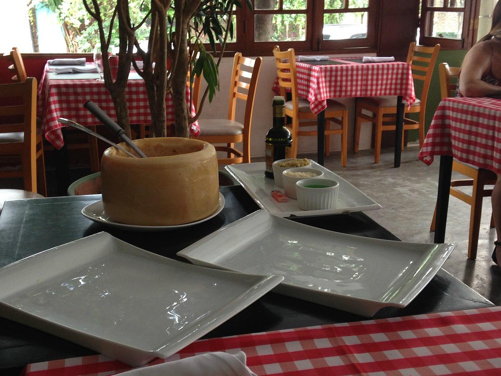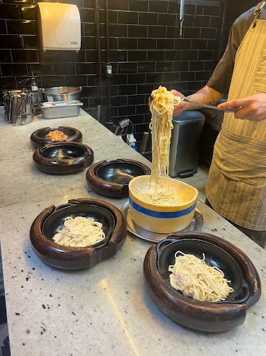 Italian spot famous for its pasta prepared in a giant cheese wheel