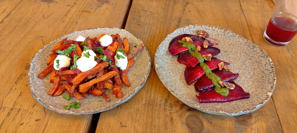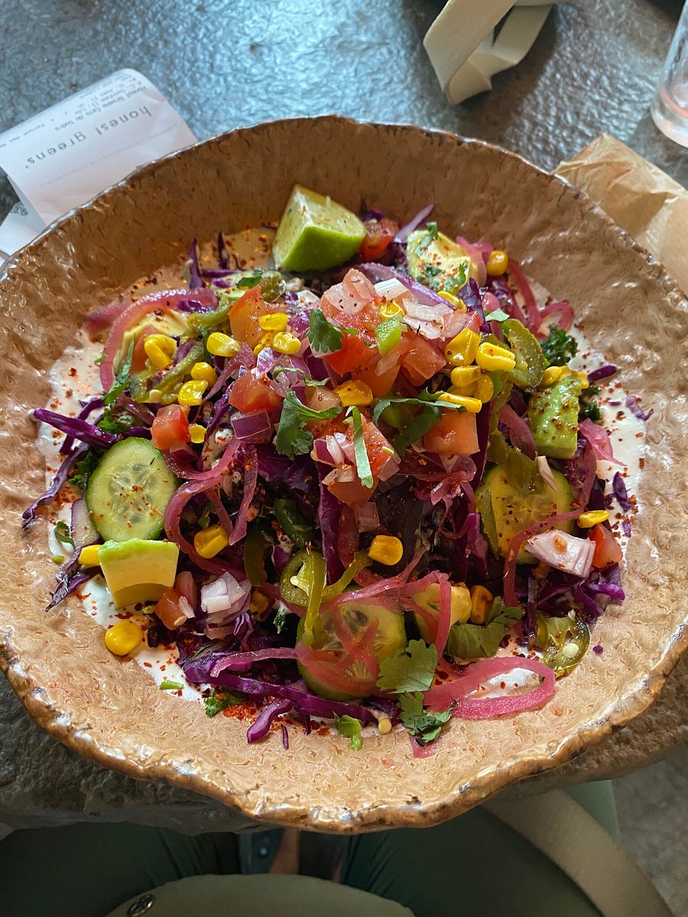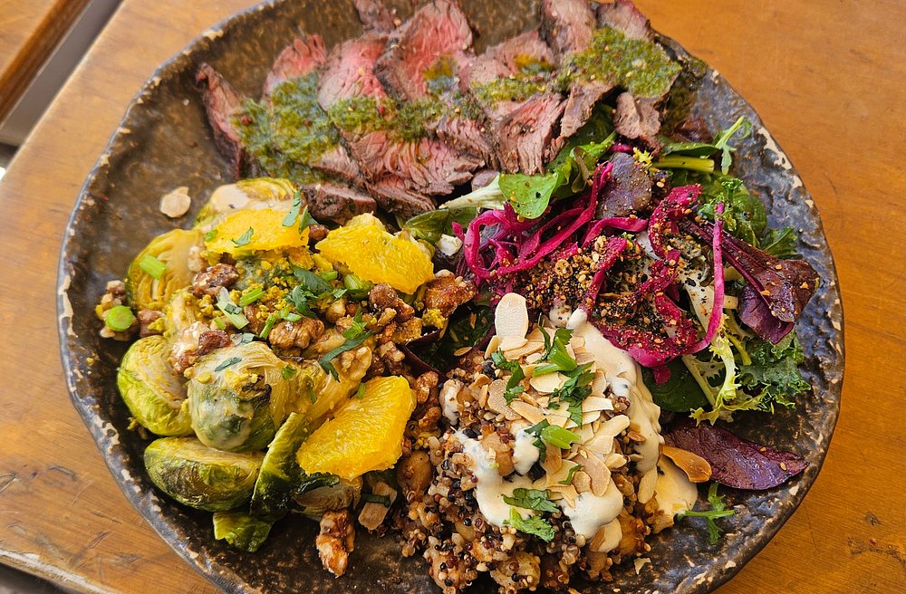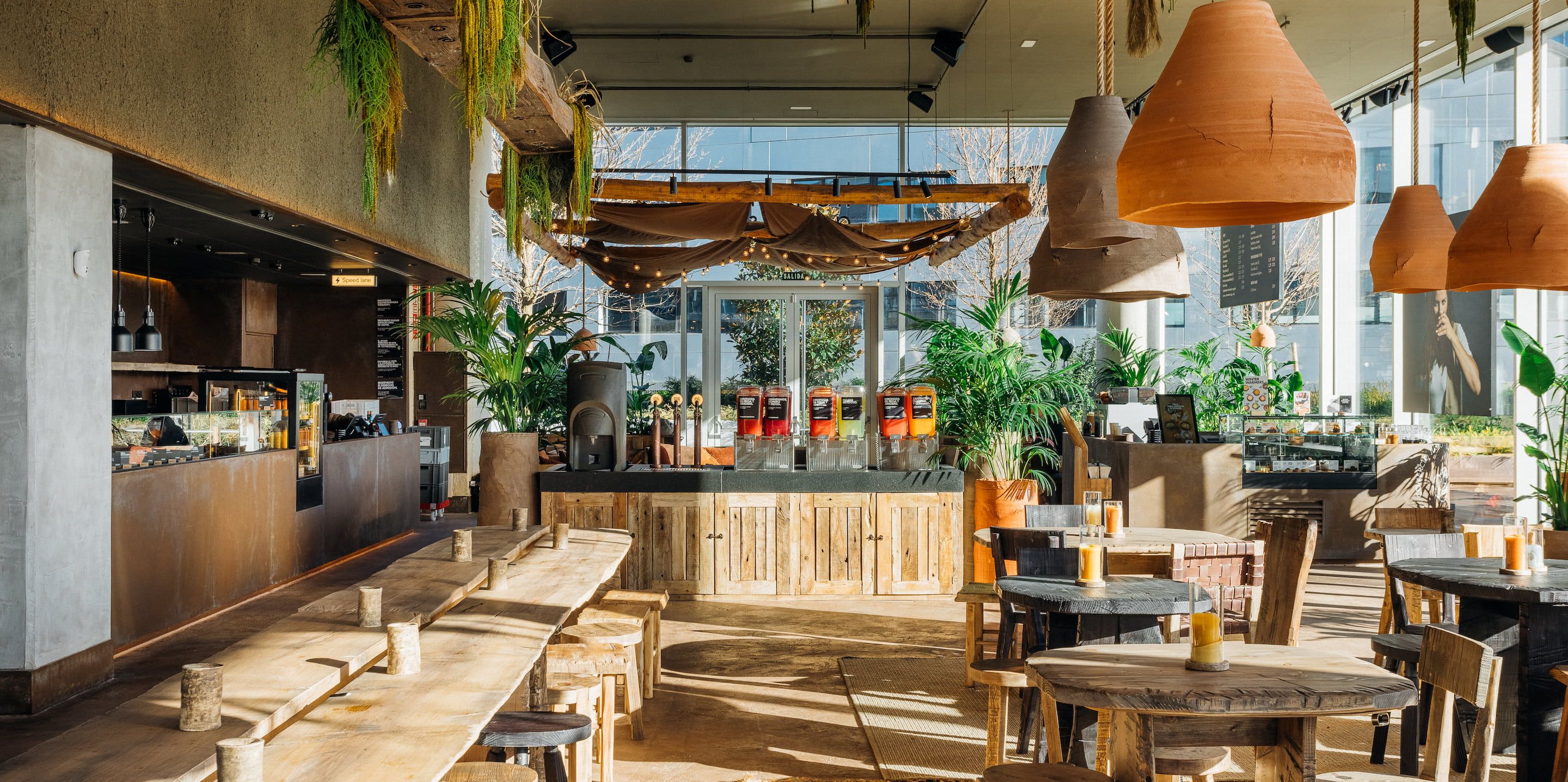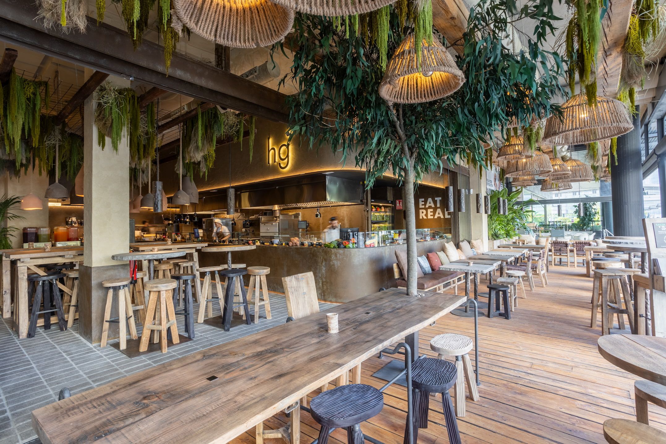 Wholesome Mediterranean flavors in a lush, plant-filled setting